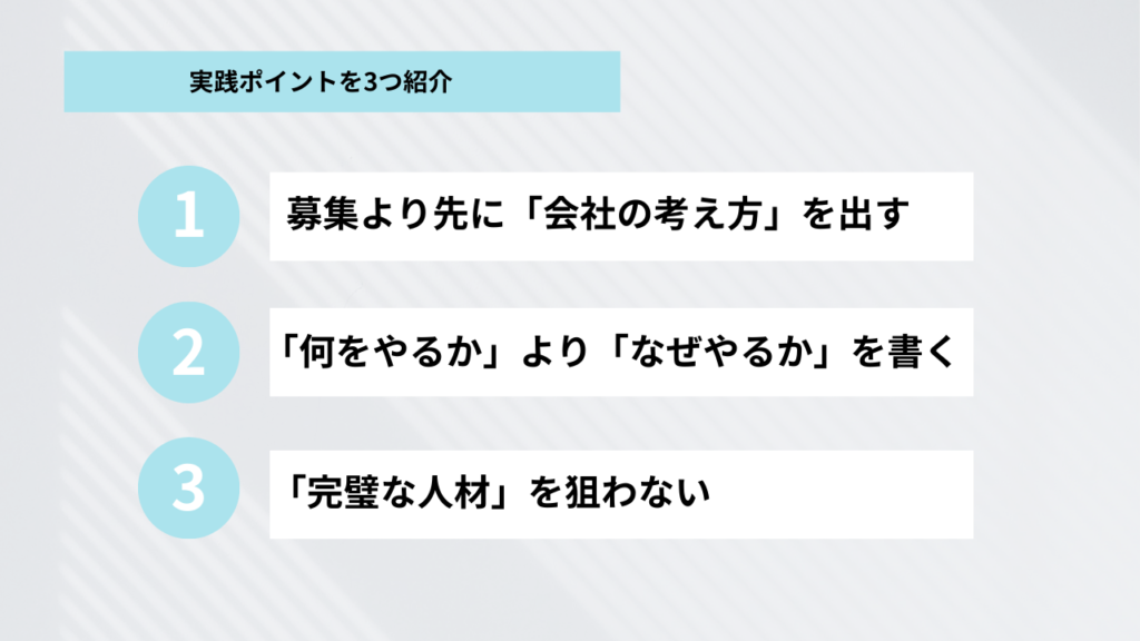 実践ポイント①|募集より先に「会社の考え方」を出す