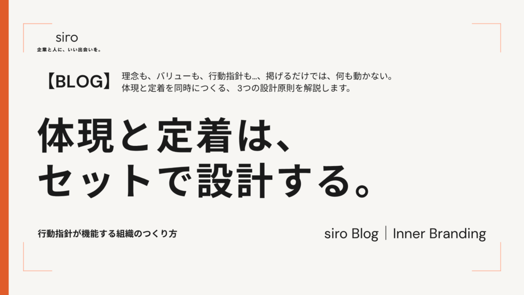 ※本記事は、siroがクライアント企業で実施しているインナーブランディング研修の実務知見をもとに構成しています。理念浸透・体現・定着に関する一般的な設計原則の整理であり、個別の企業状況については別途ご相談ください。
