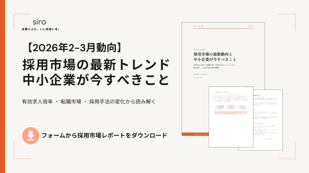 siroが定期的に公的統計やクライアント支援の実務知見をもとに 採用市場の最新動向をまとめたレポートを無料でお届けしています。