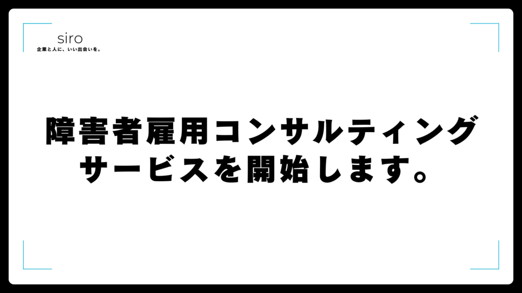 株式会社siroは、このたび中小企業向けに障害者雇用コンサルティングサービスの提供を開始いたしました。